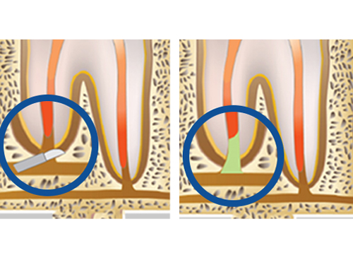 MTA 충전재는 탁월한 밀봉력과 재생력이 강한 생체물질로 염증이 있던 치아 뿌리 주변 잇몸뼈의 재생에 도움을 주는 치료방법입니다. 자연치아를 오래 사용할 수 있도록 도와주는 우수한 재료입니다.