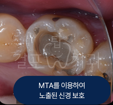 신경이 손상되었다면 신경치료로 치아의 수명을 연장합니다. 케이스에 따라 MTA도 사용합니다.