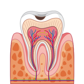 상아질 안쪽 신경까지 염증이 진행되어 극심한 통증으로 참기 어려운 정도가 됩니다.