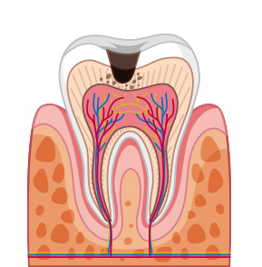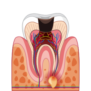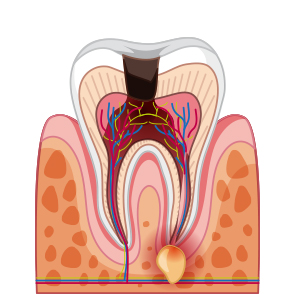 치아 내부에 있는 조직이 괴사되고, 뿌리 주변의 염증으로 인하여 뼈가 점차 소실됩니다.