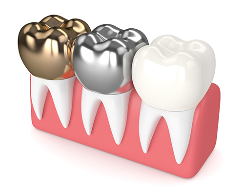 충전재에 따라 골드 크라운, PFM, 지르코니아 크라운 등으로 나뉩니다.