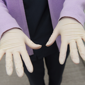 소독 전담 직원이 마스크, 보호안경, 1회용 글러브 장갑 착용하고 소독 준비단계