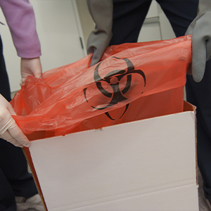 폐기한 1회용 기구는 완전히 밀봉하여 전문 폐기물 관리 업체가 정기적으로 방문 수거