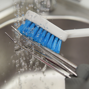 의료용 솔과 세제를 이용하여 꼼꼼한 1차 세척 과정