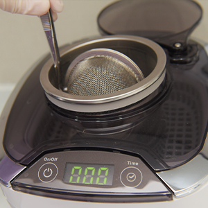 작은 기구의 미세한 부분까지 세척해주는 초음파 세척 과정