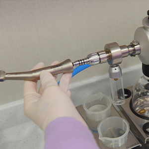 핸드피스 전용 소독을 위해 세척 및 오일링 시행
