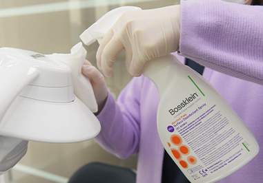 치과 체어 및 손이 닿는 공간은 표면세척제로 항상 소독 청소를 진행하며,